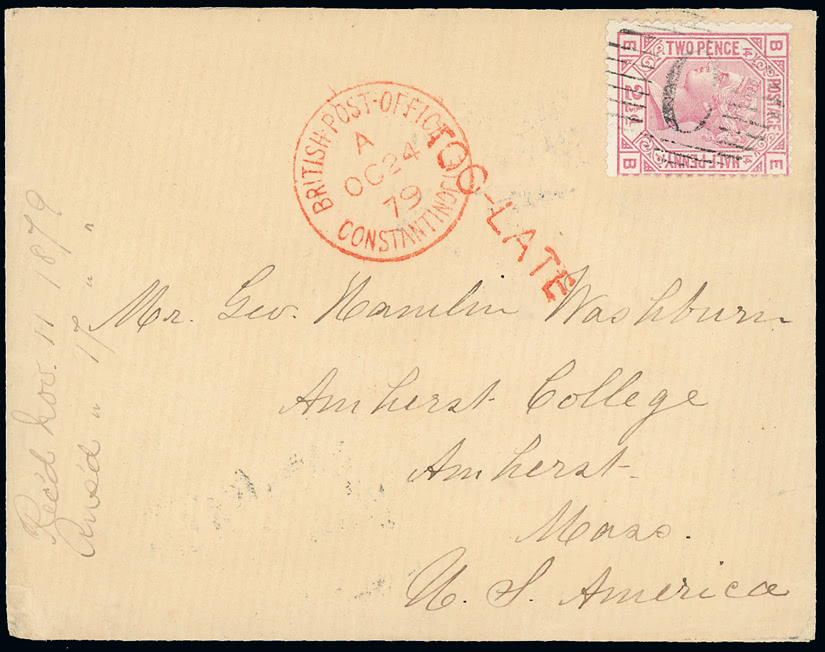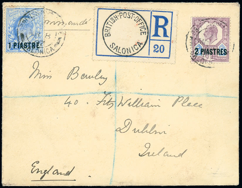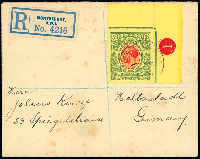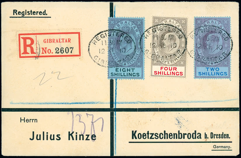 Turks and Caicos Islands: 1901 (July 22) registered 'Metz' cover to Germany bearing 1900-04 ½d. to 3s. set tied by barred oval cancellations. Photo on page 240.