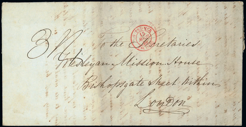 Tonga: An accumulation of covers, cards, etc. in an album, leaves and loose, incl. 1957 (Jan. 28) cover to U.S.A., franked by 1953 £1 and signed by Queen Salote, maritime mail, incoming mail with 1858 cover from Launceston to Tonga via Sydney, franked by 1855-57 6d., 1879 cover from Fiji to Tonga, etc. (few 100s)