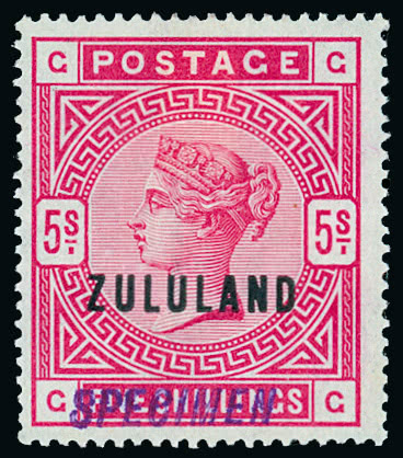 South Africa: Zululand: 1894-96 £5 purple and black on red, unused (no gum), scarce. S.G. 29. Photo.