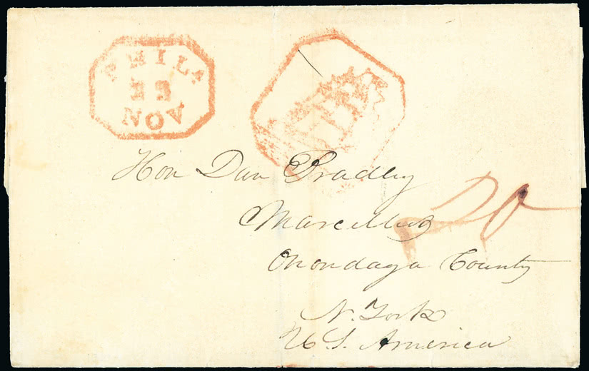United States of America: 1851 to 1870, a group of covers, incl. 1853 (May 5) entire from Selma to Mobile, Alabama with ''STEAM/5'' handstamp and endorsed ''Per Steamer'', cork cancellations, various rates, etc., mixed condition. (10)