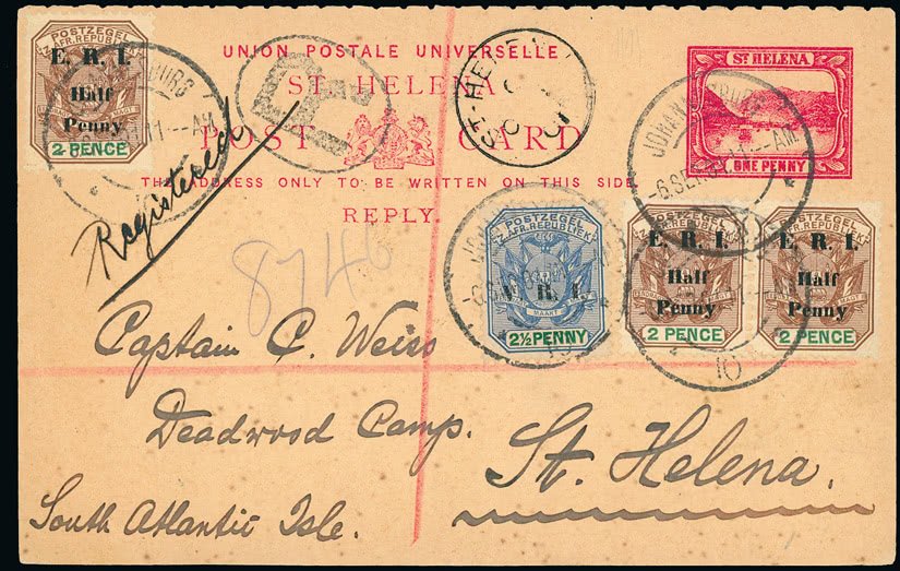 South Africa: Zululand: Postal Stationery: 1897 (Feb. 24) 1/2d. postcard used from Melmoth to England, with additional 1894-96 1/2d., fine. Photo.