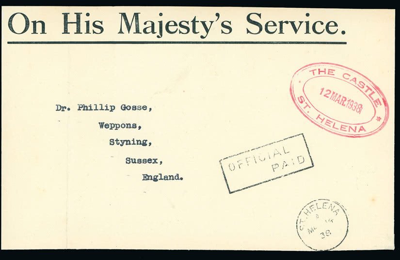 Tonga: Official Mail: 1900 (June 23) stampless O.H.M.S. envelope (207 x 102mm, slightly foreshortened at left) to Sydney, dated and initialled, with good strike of Government Frank and Nukulaofa c.d.s., July 7 arrival backstamp. The cover addressed to noted naturalist and philatelist A.F. Bassett-Hull, employed at time of despatch in the G.P.O. in Sydney but transferred to the Department of Public Works as secretary to the labour commissioners a few days before its arrival. Photo.