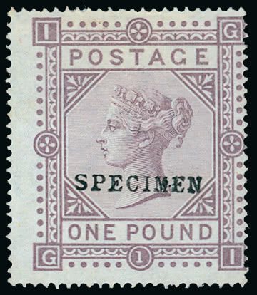 Collections and Mixed Lots: A surface printed collection on leaves incl. 1881 1d. lilac controls (7) 1883-84 white paper 2s.6d., 5s., 10s., 1888 watermark orbs error £1 brown-lilac LA, used with faults, 1883 'lilac and green' unused to 4d., 6d., used 6d., 9d. (2), 1s., 1887-92 'Jubilee' mint to both 1s. and used £1 green IE, also 1/2d. green and 1/2d. vermilion in mint blocks of 30 and 36 respectively, also Zululand 1888-93 5d. and 5s. handstamped ''SPECIMEN'' in violet, mainly good to fine.