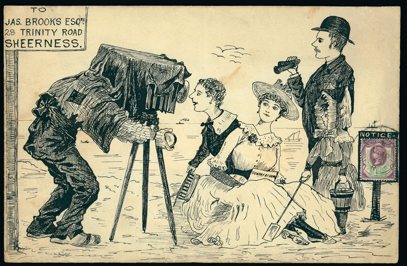 Postal History and Covers: Valentines: An 1831 to 1887 collection on leaves comprising 1831 (Feb. 14) pre-stamp wrapper with painted design of a Cherub playing a harp over a lady laying on a bush and, with printed verse, plus additional hand written verses, c. 1860 card with married couple fighting (movable elements), 1887 fronts form early cards with intricate multi-coloured embossing, one with short poem, 1887 intricate card with unused embossed envelope, c. 1920 card front with anti-smoking message ''I wish you would leave off the habit of smoking'' above a disgruntled pigeon beside a chimney, four embossed envelopes franked with 1d. stars or plates comprising 1857 (Feb. 13) to Fareham, 1861 (Feb. 15) to Liverpool, 1872 (Feb. 14) to Hampstead, 1873 (Feb. 13) to Dorking, some toning and a few folds but mainly good to fine.