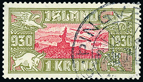 1072 | Sale number: 109 Iceland: 1930 Millenary Postage 3a. to 10k. set with Air 10a., also 15a. to 1k. Air set, also 3a. with variety 'side entrance', 25a. and 40a. with 'white dot' varieties, fine used. S.G. Facit 173-193, 173v, 179v, 182v. (24). Photo. Price Realised UNSOLD |