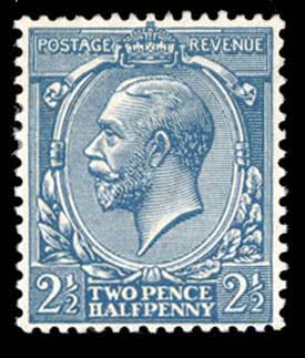 2222 | Sale number: 15 King George V: 1912–24 watermark Royal cypher 21/2d. dull Prussian blue on toned paper, a superb mint example of this rare shade. R.P.S. certificate (1974). S.G. Spec. N21(18). Photo. Price Realised £2500 |