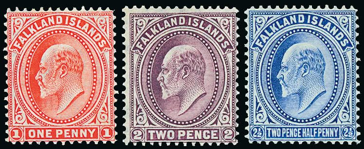 Falkland Islands: Queen Victoria Proofs and Specimens: Specimen Stamps, 1891-1902 1/2d. blue-green, Nov. 1891 printing, 1d. orange red-brown, Oct. 1891 printing, 21/2d. pale chalky ultramarine, Aug. 1891 printing, each handstamped ''SPECIMEN.'' (16.5 x 2mm) in red and affixed to card, fine and scarce. (3) Photo.