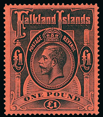 Falkland Islands: 1933 Centenary £1 black and carmine tied to piece by ''8 JY/33'' c.d.s., fine. S.G. 138, cat. £3,250. Photo.