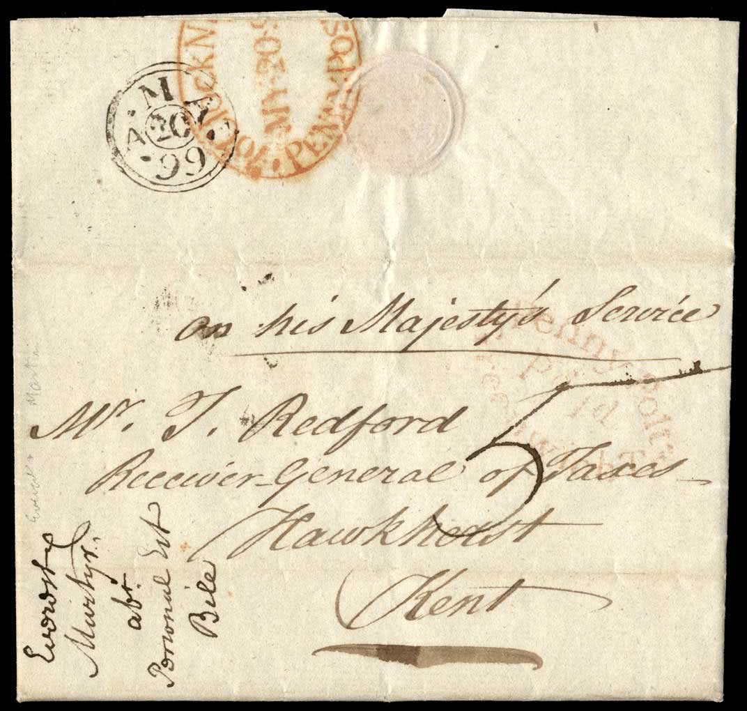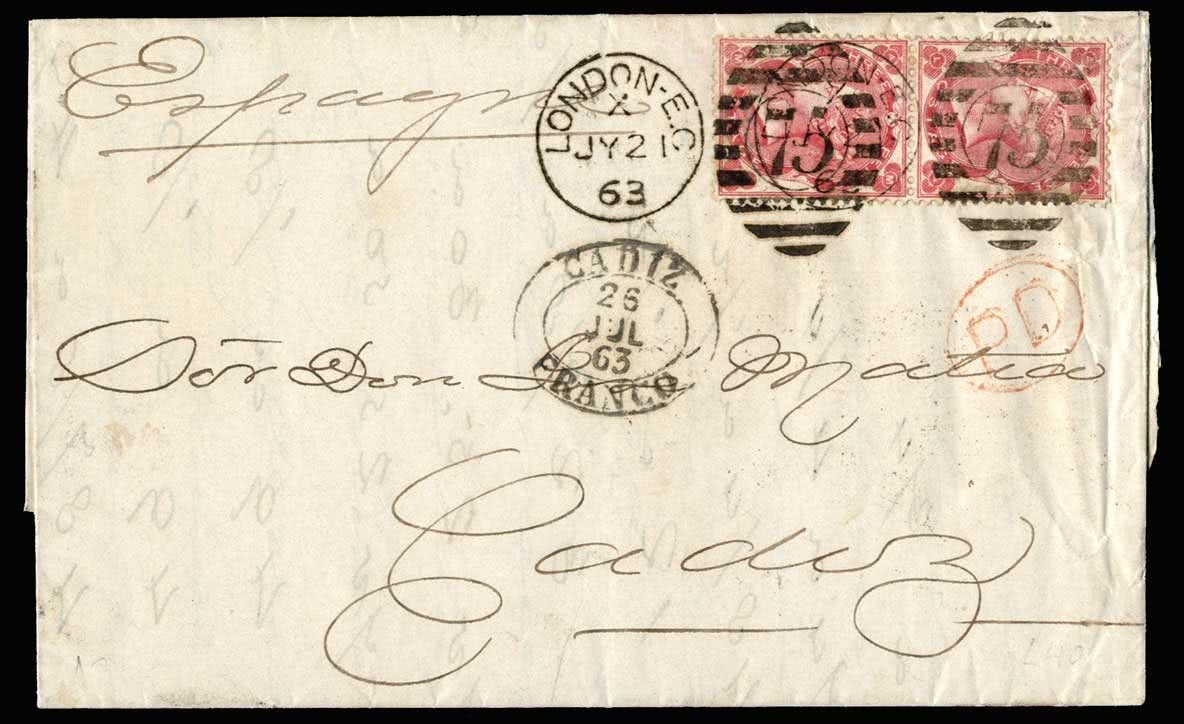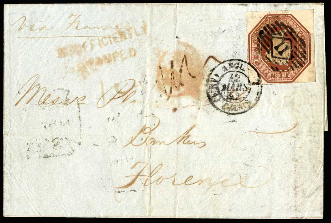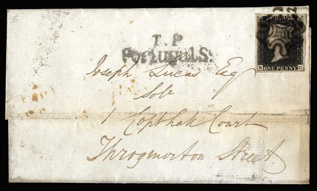 Collections and Mixed Lots: 1840–70 various mostly covers incl. 1840 (Oct.) envelope from London to Abergavenny bearing 1840 1d. PL with three margins, placed upside down and with red Maltese Cross leaving the Queen completely clear, 1840 (Nov.) from London to Ayr, redirected three times and variously paid in cash and once with 1840 1d. LK, 1846 (Sept.) cover from India to London via Southampton, redirected from London to Somerset with 1841 1d. NH, 1854 (Jan.) cover from London to Dieppe bearing 1841 2d. plate 4 PG-PK strip of five, etc., also 1938 International Labour Office letter sheet bearing 1937–47 1/2d., 1d., 11/2d. and 21/2d. cancelled ''GOVERNING BODY/I.L.O./24 OC/38/LONDON W.1'' c.d.s's. (18 items).