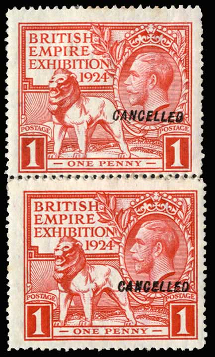 Jersey: 1940 unissued Cutland essay 1d. scarlet in a fine mint pair from top of sheet, rare. S.G. Spec. JW19, cat. £4,400+. Photo.