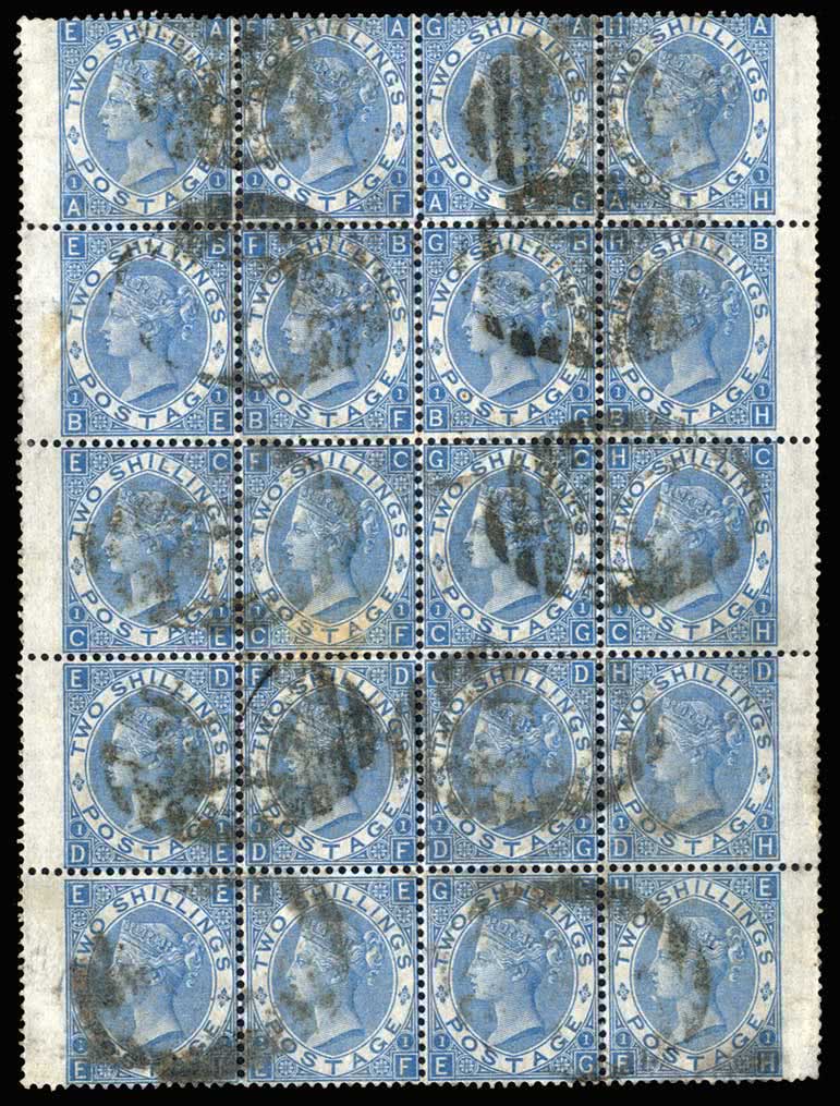 Collections and Mixed Lots: A mainly used Q.V. collection in a stockbook, incl. 1840 1d. plates 1b (2), 2 with R.P.S. Certificate (2000), 4, 5 (2) and 7, 2d. plate 1 (3), 1841 1d. plate 24 TD with watermark inverted, 1841 2d. cancelled no ''8'' in Cross and ''12'' (2), 1847-54 embossed 1s. (3), 10d. (2), 6d. (3), 1855-57 4d. (13), 6d. (2), 1s. (6), 1862-64 3d. (2), 4d. (7), 6d. (8, 3 are inverted watermark), 9d. (3) and 1s. (6), 1873-80 1s. orange-brown plate 13 MI and RI, 1887-92 £1 green DD and ED, etc., mixed condition. (100's).