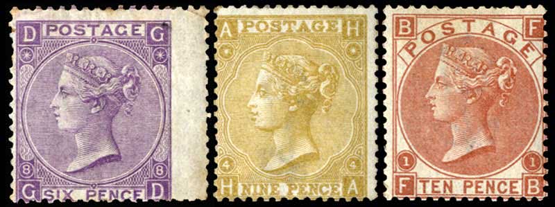 Collections and Mixed Lots: A Q.V. collection on leaves, mainly unused, incl. 1862-64 3d., 4d., 6d., 9d. and 1s., 1865-67 4d. plates 7 to 14, 1867-80 3d. plates 4 to 10, 6d. plates 8 and 9, 9d., 10d. (2), 2s. blue, 1873-80 3d. plates 11 to 20., 6d. grey plates 13 to 17, 1s. green plates 8, 9, 10, 12 and 13, 4d. sage-green plate 15, 16 (3), 4d. grey-brown plate 17 NF, 8d. orange NH, 1883-84 1/2d. to 1s. dull green, 1883-84 watermark anchor 2s.6d. HG, 5s. CA, 10s. HC, also 1840 1d. used, etc., very mixed condition. (Few 100').