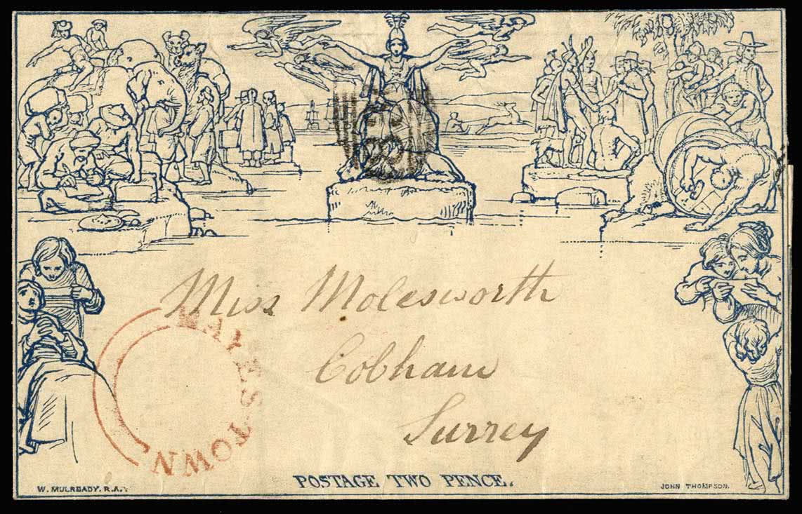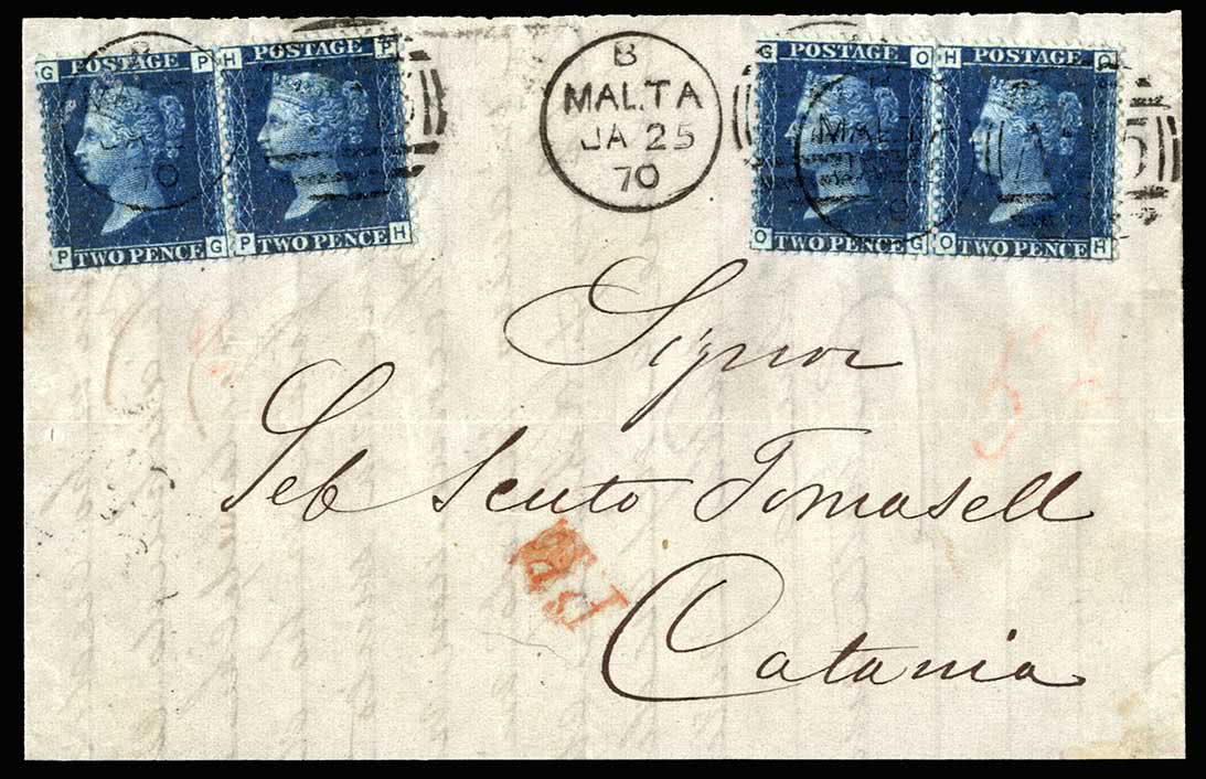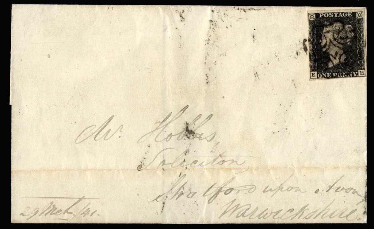 Collections and Mixed Lots: The interesting balance of a property, pre-adhesive to Q E II, incl. 1772 covers (2) showing fair ''BRISTOL'' ''B's'', James Chalmers 1838 ''General Postage./NOT/EXCEEDING/HALF/AN OUNCE./One Penny.'' stuck-down pair of reprinted essays with ''DUNDEE/10th February, 1838'' cancellation, 1840 Mulready 1d. letter sheets A10, A68 (forme 3 displaced stereo) unused, A7 used 1844 (Sept.) from London with 1844-type cancellation, A26 and A237 with adverts used, A31 used, envelope A133 used, line engraved incl. 1840 1d.'s (40) incl. plate 5 PB state 1 with full margins, some on covers, 2d. (6, one on cover) 1841 1d.'s incl. plate 5 PB state 3 re-entry, HC tied by ''TOTNESS/OC 18(?)/1842'' circular datestamp to envelope to Ashburton, nos. in M.C.'s on covers, 2d. plate 3 QB-RC block of four with M.C.'s, surface printed incl. 1867–80 2s. blue (2), 1867–78 5s. plate 1 (2), used, 1868 (Dec.) envelope from London to Lisbon with 1867–80 6d. plate 6 & 2s. blue plate 1, 1880–83 21/2d. plate 22 KB, 3d. plate 20 FF, mint, 1881 die 2 1d. imprimatur and plate proof, 1887–92 41/2d. panes of 20 (2), 1900 1s. (2), KE VII 1d. (2), 4d. & 5d. imperforate plate proofs, mint values to 9d. (10 incl. a corner block), 10d. (8), 1s. (9, one with watermark inverted), 2s.6d. (2), KG V incl. Downey heads incl. no cross varieties, 1912 die 2 watermark crown 1/2d. lower 2 rows of the sheet with variety no control, mint, 1912–24 Royal cypher to 10d. (18), 1s. (5, one with watermark inverted), with shades and controls, mainly mint, Seahorses incl. 1913 Waterlow 2s.6d., 1915–18 De La Rue 5s. top marginal, 1918 Bradbury 2s.6d. (3), 5s. (2), 10s., mint, photogravure controls, etc., mixed condition.