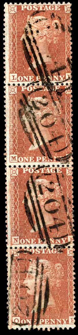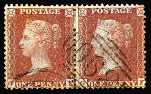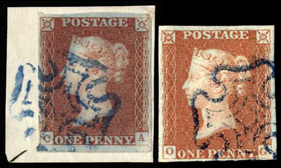 Collections and Mixed Lots: 1840–84 mainly used selection in a stockbook with a fine range of mainly full margined 1840 1d.'s (41) incl. plates 1b EG-EH and 6OE-OF pairs, 1840 2d. plates 1 EC, EE & NI with full margins and red M.C.'s, TI-TK three margined strip on piece with red M.C.'s, plate 2 GD-GF full margined strip with black M.C.'s, RC most attractive with red M.C., 1841 1d.'s incl. PD-QE full margined block of 4 with M.C.'s, set of nos. ''1'' to ''12'' in M.C.'s on full margined adhesives, 1841 2d. plates 3 (12 with 2 pairs and a strip) with M.C.'s, 4 (20, 8 matched with SC16 2d. plate 4), 1850 Archer perf. 16 1d. DE, 1854–57 2d. stars (15) incl. 1855 LC15 plate 5 PE-QF block of four, LC16 plate 5 KH; Surface Printed incl. 1865–67 9d. (3), fair, many with c.d.s. incl. 1867–80 3d. (12), 1s. (35), 2s. blue, 1872–73 6d. plate 11 (11), 1880–83 1s. plate 14, etc. with a few used abroad, condition varies in places. (280).