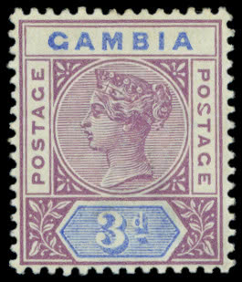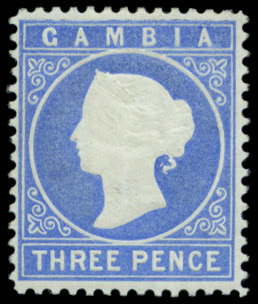 Gambia: 1869-72 Imperforate, No Watermark 6d. blue in a very pale shade, fine used. R.P.S. certificate (1969) states “pale blue, not the very pale shade”. Photo.
