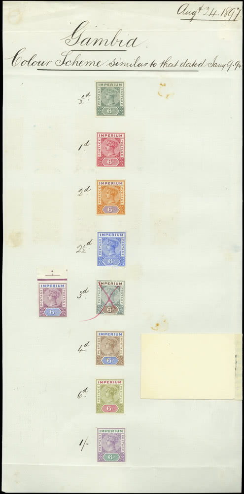 Gambia: 1869-72 Imperforate, No Watermark 6d. deep blue, overprinted “SPECIMEN” (Samuel type D5), good margins with gum, rare. S.G. 3s. Photo.