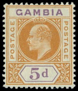 Gambia: 1874 Imperforate, Watermark Crown CC 4d. brown, with watermark inverted, mint some black offset on gum, otherwise fine. S.G. 5w, cat. £700. Photo.