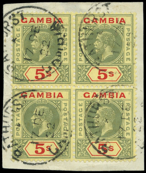Gambia: Cancellations and Postal Markings: Forgeries, a K.E.VII to K.G.V. selection of Madame Joseph cancellations, incl. 1912-22 5s., etc. (23)