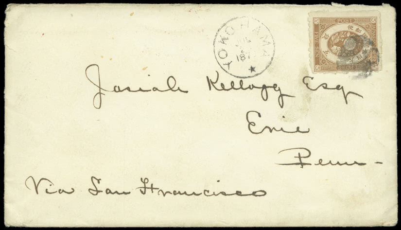 Turkey: 1877 (Aug. 1) envelope from Besika to England, bearing 1876 50pa. blue and yellow, tied by double ring “BESIKA” datestamp. The British fleet was based at Besika Bay from 1877 to 1879, to protect British interests in the area. Ex Straus. Photo.