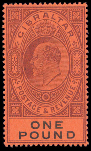 South West Africa: 1927-30 £1 pale olive-green and red without stop after “A”, fine mint, usual off-white gum. R.P.S. certificate (1999). S.G. 57a, cat. £1,600. Photo.