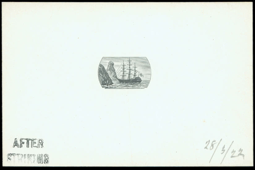 South West Africa: 1927 “S.W.A.” proof of overprint only, four impressions in black on thin glazed card. Photo.