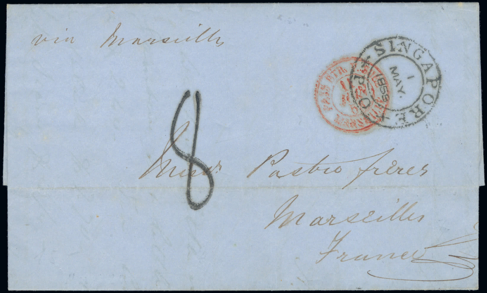 Uganda: Cancellations and Covers: British Vice Consul's Seal and with manuscript ''Consular'', 1896 Type-Set 8a. on yellowish paper, showing small ''o'' in ''POSTAGE'' [R. 3/1], with faint ''Consular'' manuscript and part seal, slight imperfections. S.G. 59a. Photo.