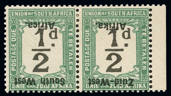 Zanzibar: 1895-96 overprinted in black 1a. plum, mint horizontal pair, one with variety ''Zanibar'', mint, traces of paper fibres adhering to gum, otherwise fine. S.G. 4, k, cat. £1,700. The property of another vendor. Photo.