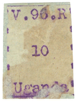 Uganda: Cancellations and Covers: Forwarding Agents: 1896 Type-Set 2a., marginal at left showing ''enzie & Co.'' part strike of violet straight line of Smith Mackenzie & Co. forwarding agents, slight rust spotting. S.G. 56. Photo.