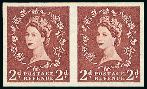 Queen Elizabeth II: Decimal Machins: 24p. chestnut Harrison photo ACP/PVAD variety imperforate in a horizontal pair, a couple of small light gum bends otherwise fine. S.G. X969a, cat. £275. Photo.
