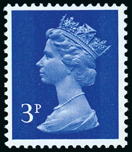 Queen Elizabeth II: Decimal Machins: 3p. ultramarine Harrison photo PVA two bands on phosphor coated paper, the experimental coating ex cylinder 21 printed for test purposes in 1972, the trial later cancelled, fine unmounted mint, rare. Photo.