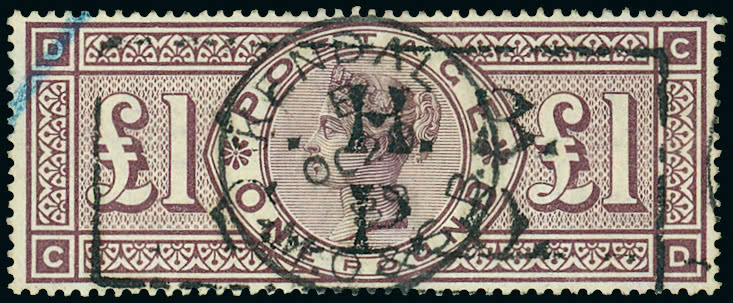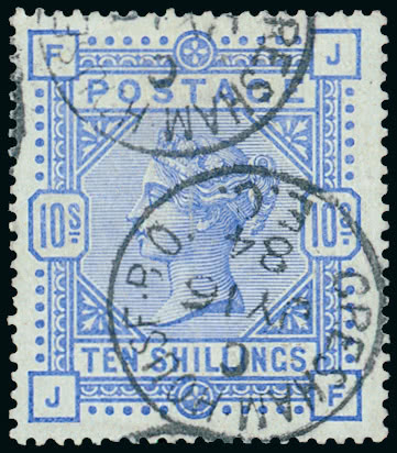 A Q.V. used selection, incl. 1847-54 embossed 6d. (2 shades), 10d. and 1s., 1867-83 watermark Maltese Cross 5s. plate 1 (2) and plate 2 (2) and 10s., 1883-84 2s.6d. and 5s. apparently on blue paper, 2s.6d. (2), 5s. (2) and 10s. (2) on white paper, 1883-83 lilac and green set, 1887-92 Jubilee to both 1s., etc., also Telegraph 1876 £1 brown, mixed condition. (49)