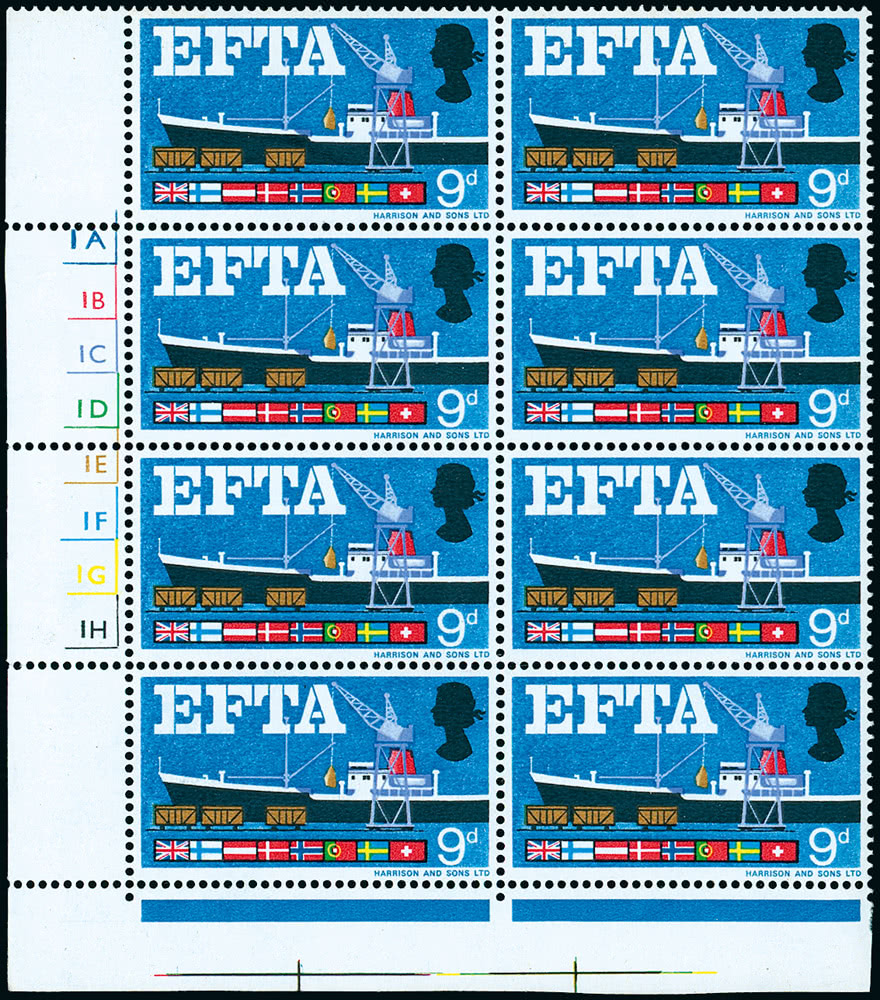 Regionals: Scotland: 1971-93 51/2p. violet centre band strip of six, with the lower three completely imperforate, the other three partly perforated, gum wrinkles, otherwise fine unmounted mint, S.G. S22a, also 111/2p. drab upper right marginal block of four variety imperforate between stamp and right margin, fine unmouted mint, S.G. Spec. XSL1a. Cat. £815. Photo.