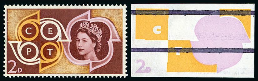 Queen Elizabeth II: Decimal Machins: A specialised collection in two Connoisseur albums (fine condition), two stockbooks and loose in a carton, with a selection of pre-decimal incl. booklet and coil stamps, 5d. PCP + two bands, 6d. head B 250 screen ex coil, decimals to 2012 incl. booklet and coil stamps, head types, value types and settings, phosphor screens, JET phosphors, thin and translucent papers, shades, glazed papers, screened values, all-over phosphors, displaced phosphors, quantity of short and inset phosphor bands, FBO's incl. 4p. (wax strip), 31/2p. OCP/PVAD, 12p. yellowish green with phosphor bands front and back, 121/2p. and 18p. deep olive-grey imperf. pairs, 151/2p. left band and right band ex displaced phosphor books, 17p. grey-blue PCP + two bands (2, one with short bands at top), high values incl. £2 with ''£'' sign omitted in a cylinder strip of three, Castle issues with paper and gum variations, 1988 £2 on glazed paper, Machin design Post and Go issues incl. short and inset bands, font errors, etc., the later issues in stockbooks all identified by Mike Holt new issue numbers (Newsletters included). (100s)