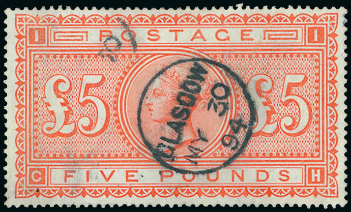 A collection in four albums, incl. 1840 1d. (8) and 2d. (3) used, 1841 1d. used (11, one with number ''6'' in Maltese Cross), later line engraved with 1864-79 1d. red plate 225 used, 1847-54 embossed 6d. and 1s. used, surface printed with 1867-80 values to 2s. brown used (reperforated wing margin), 1867-83 5s. (2) and £5 orange used, 1883-84 2s.6d., 5s. and 10s. used, 1887-92 £1 used and to both 1s. mint, 1902--10 2s.6d. to £1 used, 1918-19 Bradbury 2s.6d., 5s. and 10s. used, range of officials, postage dues, regionals, Channel Islands, later with issues to the 1990s, very mixed condition. (100s)