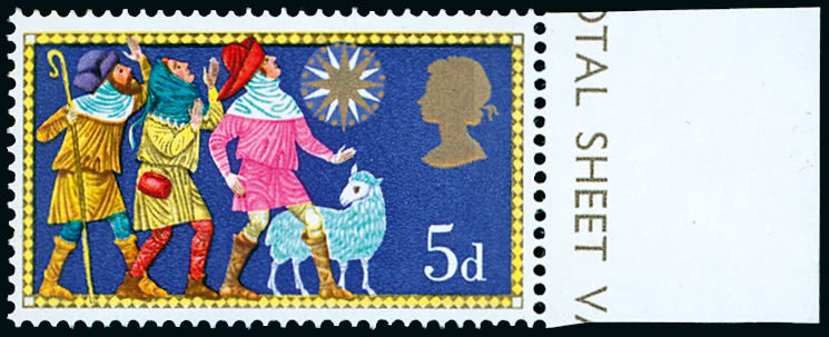 Isle of Man: 1968-69 5d. and 1971 5p. with sheet margin at right showing variety phosphor omitted, unmounted mint, fine. S.G. 7Ey and 10Ey, cat. £450. Photo.